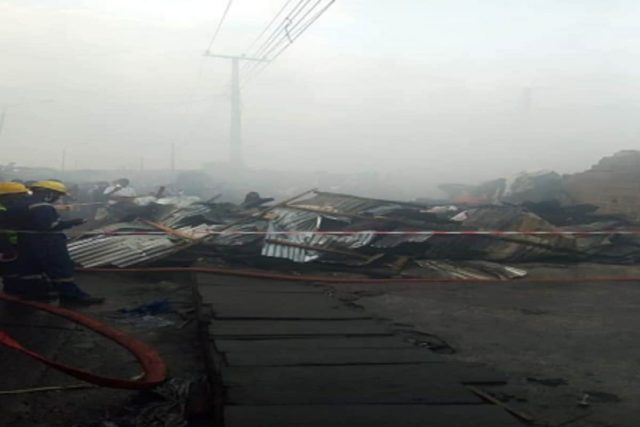 Mazauna yankin sun ce gobarar ta tashi ne cikin dare, sannan ta lakume shagunan kayayyakin gwanjo masu yawan gaske.